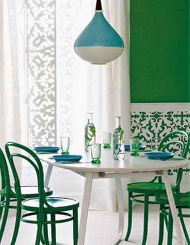 2012-5-31在綠色的墻面的下方搭配鏤空花紋的裝飾,讓整面的綠色不會太顯眼,又給餐廳增加了復古的感覺。白色的桌子、綠色的椅子、白色的地板,是整個餐廳的色彩搭配十分協調。餐廳色彩布置方案——生機勃勃綠色篇餐廳色彩布置方案——生機勃勃綠色篇餐廳色彩布置方案——生機勃勃綠色篇餐廳色彩布置方案——生機勃勃綠色篇...[繼續閱讀] -
