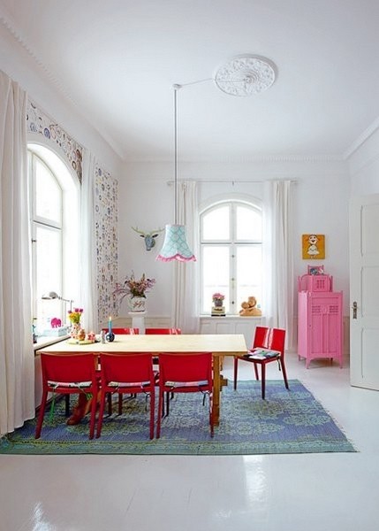 2012-5-31紅色的墻面搭配紅色花朵圖案的椅子,使這個餐廳顯得十分鮮亮,紅色讓你胃口大開。金色的燭臺,給這個餐廳帶來了復古的情調。玫紅色的墻面,玫紅色的地毯,玫紅色的杯子,讓你步入餐廳就能感受到浪漫的情懷。在整體的玫紅色中加入米白色的椅子,更使餐廳顯得格調高雅。...[繼續閱讀] -