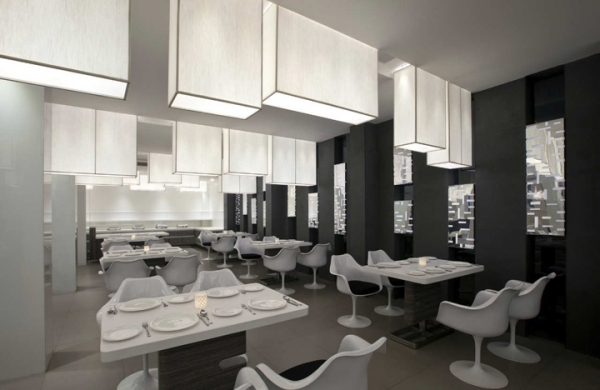2013-5-24作為商務(wù)酒店的一部分,這是個(gè)少見的灰白色調(diào)餐廳,充滿線性元素,照明燈具是一大特色。方形的綢布質(zhì)感燈罩高低起伏,大小不一,與窗戶的造型保持統(tǒng)一。卡座的花朵造型更是別具一格,氣質(zhì)優(yōu)雅,光線柔和細(xì)致。...[繼續(xù)閱讀] -