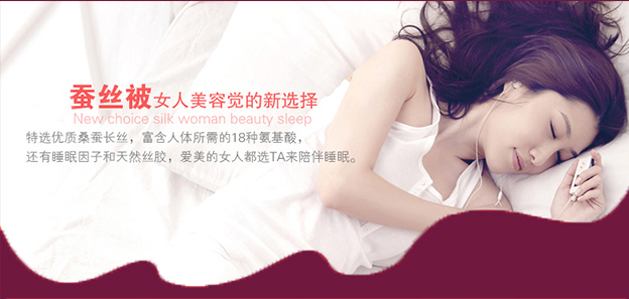 2014-9-25這幾天浙江處于臺風額惡劣天氣,很多年輕人的夜生活改成了舒適的“睡大覺”;那么,蠶絲被成了安穩睡大覺的最佳伴侶。蠶絲被集輕、柔、細為一體,比其他品種的被子更為貼身,素有"人體第二皮膚"的美譽,被業界稱為"纖維皇后"。蠶絲的主要成分為純天然動物蛋白纖維,其構造和人類的皮膚是最相近的,有87%是一模一樣的...[繼續閱讀] -