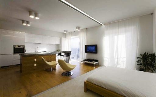 2013-7-25這套名為Dubrovka的公寓位于俄羅斯,由zaborarchitects設計。這套裝修案例的設計非常有趣,由于空間小,設計師將廚房、臥室和客廳均融為一體,也就是所謂全開放式設計。當然,在需要隱私空間的時候,只要將推拉門拉出來即可,考慮還是比較周到。該公寓擁有地板直上天花板的落地窗,可以一覽城市美景...[繼續閱讀] -