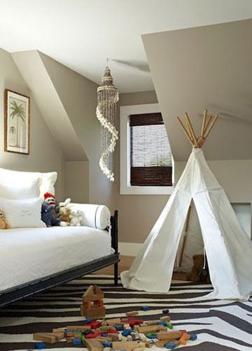 2012-5-7利用客廳的一角放上一頂帳篷,白色帳篷和沙發的色彩相統一,搭配斑馬圖案的地毯,十分協調。當大人坐在沙發上休息時,讓孩子在一邊玩耍,能時時照看孩子。帶有夢幻色彩的房間,沙發上高高的帳篷直達屋頂,白色布幕和窗簾質地相似,輕揚飄逸。房頂上的樹枝裝飾,給房間帶來了自然的氣息。深色的壁爐搭配一旁的帳篷,使整個空...[繼續閱讀]