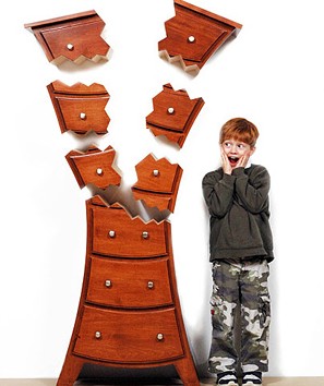 2013-1-3這個(gè)柜子的造型很像是旁邊這個(gè)調(diào)皮的孩子拿鍾子敲成這樣的,柜子的上半部夸張的散落在墻上,鋸齒狀的造型和零碎的抽屜,倒也別致有趣哦。很像座鐘的柜子,卡通的造型看起來十分的可愛,看著它,小編仿佛看到了動(dòng)畫片中蹦蹦跳跳的小桌子小凳子,全都跳起舞來的樣子,家里擺上這樣一件家具,倒也很有趣哦。栽在花瓶里的綠色植...[繼續(xù)閱讀] -