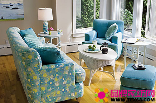 藍色布藝沙發打造清涼舒適家