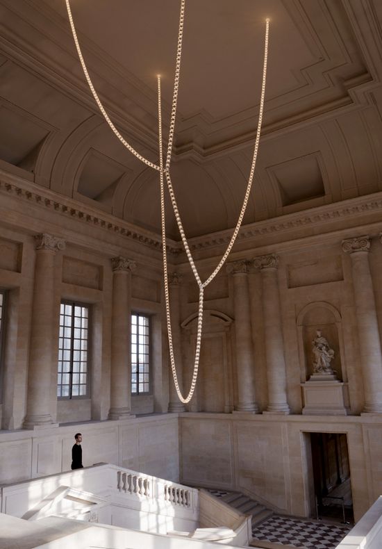 2013-11-25法國(guó)設(shè)計(jì)師Ronan和水晶制造商施華洛世奇在巴黎凡爾賽宮合作開發(fā)“百利吊燈”。800水晶模塊組成的照明系統(tǒng)暫停,照亮了室內(nèi)的空間結(jié)構(gòu),使用一個(gè)連續(xù)的圖案像變魔術(shù)一樣。螺紋不銹鋼骨架,連續(xù)的水晶繩漂浮在主樓梯,白天閃閃發(fā)光,夜間發(fā)光則將溫暖延續(xù)。...[繼續(xù)閱讀] -