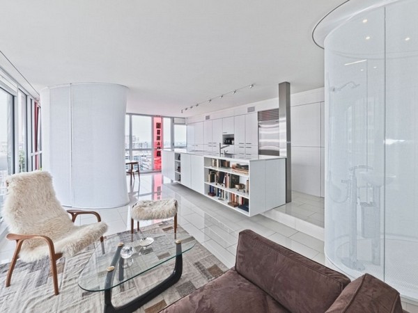 2013-6-25這間潔白整潔的公寓位于加拿大安大略渥太華,由KarioukAssociates設計完成。設計師采用幾根橢圓柱將淋浴室和儲藏室與房間分割開,使得室內看起來異常寬敞,從而解決了城市住宅所面臨的公共空間劃分問題。房間整體上采用了白色的裝飾風格,白色的瓷磚、白色的墻壁,搭配玻璃墻面設計,使房間顯得相當整潔。...[繼續閱讀] -