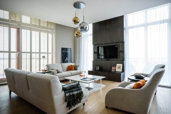 2013-5-30今天為你介紹的這間公寓,可以享受城里最好的視野。它俯瞰維斯瓦河、華沙大學圖書館和國家體育場。設計師的主要目的是營造一個豪華寬敞的空間,并且帶來溫暖和安寧的感覺。為了實現這一目標,他們使用清晰的線條、簡約的造型,并且用不同的材質加以組合:大理石,橡木地板,絲綢墻紙,自然貼面和皮革。通過海軍藍色和桔色搭...[繼續閱讀] -