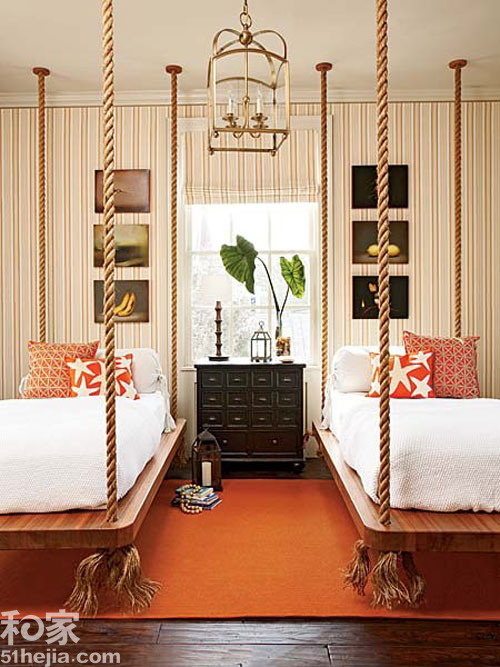 2012-5-18導語:說到吊床,我們往往想到的是度假時的愜意感受,2顆樹,一張網,隨意平躺,仰望天空,吹來的或是清涼...能遠不止這些,小編帶來12個家居吊床布置,快讓小家“蕩漾”起來。節約型雙人房:看到這間臥室首先被兩張雙胞胎吊床所吸引,床的組成十分簡單,四根粗麻繩,一塊正好厚度的木板,最后放上柔軟的床墊即可,這比任何...[繼續閱讀] -