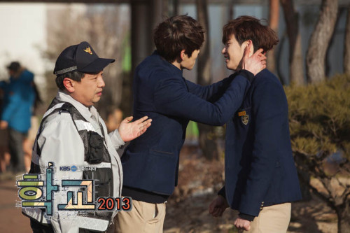 2013-1-26韓國KBS2TV月火劇(周一周二播出的劇集)《學校2013》繼續熱播。今日(1月25日)下午,電視劇官方網站中公開一組李鐘碩和金宇彬氛圍奇特的片場照。公開的照片中,金宇彬和李鐘碩面對面站著四目中透著“激情”,周圍彌漫著深情氛圍。另一張照片中,金宇彬鉤住李鐘碩的脖子,貌似即將上演熱吻一樣,看得眾人好奇...[繼續閱讀] -