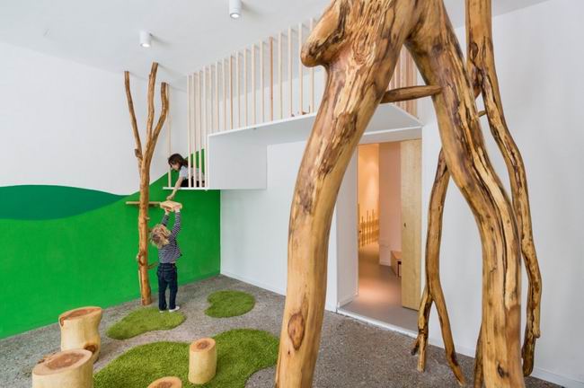 2013-7-10柏林的這座幼兒園以“自然”為主題,干凈的白色墻壁,綠色的墻壁和簡單幾塊隨意的地毯,幾根原木既可以作為孩子攀爬的樓梯也可以作為配飾使整體顯得更自然,不論是儲物柜或是衣架也都是由木頭制成,盥洗室淡淡的綠色瓷磚也貼合著自然的主題,孩子在這里成長,似乎很容易可以融入大自然。...[繼續(xù)閱讀] -