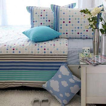 夏裝家居 藍(lán)白為主的小清新沙發(fā)區(qū)布藝