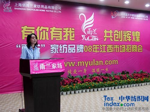 “雨蘭”策劃部歐陽經理結合萬總的發言,從中國經濟的發展、人口比例的分布、家紡流行發展趨勢等各個方面數據為經銷商們展示家紡品牌加盟前景。并為經銷商們介紹公司將如何運用廣告、促銷等一系列的策劃活動給經銷商們一個宣傳支持,為經營“雨蘭”品牌的合作伙伴準確、快速的切入到當地的市場提供幫助。