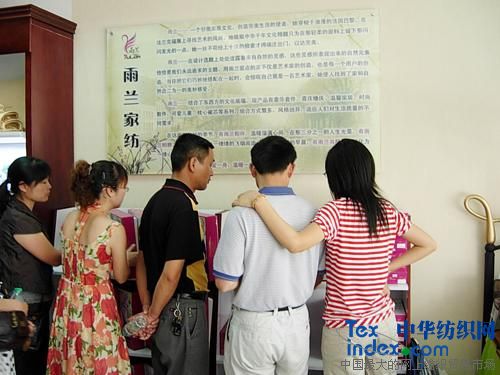 會議議程到此,經銷商們已經對雨蘭品牌有了深刻的了解。但這還不夠,這些經銷商們匆匆吃完工作人員在北湖賓館精心準備的豐盛酒席后,便上車前往專賣店參觀。可見激動的不只是筆者我,這也讓我的會前激動的心緒找到了原因。筆者在專賣店和展示廳里看到經銷商們前擁后擠,扎堆熱論,時而頂頭稱贊,時而認真研究,時而搖頭端詳的樣子,不禁莞爾。但同時也為他們的認真態度肅然起敬,正是有這樣的一批人,家紡行業才會欣欣向榮。